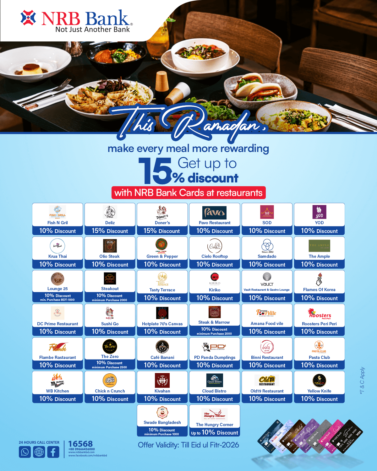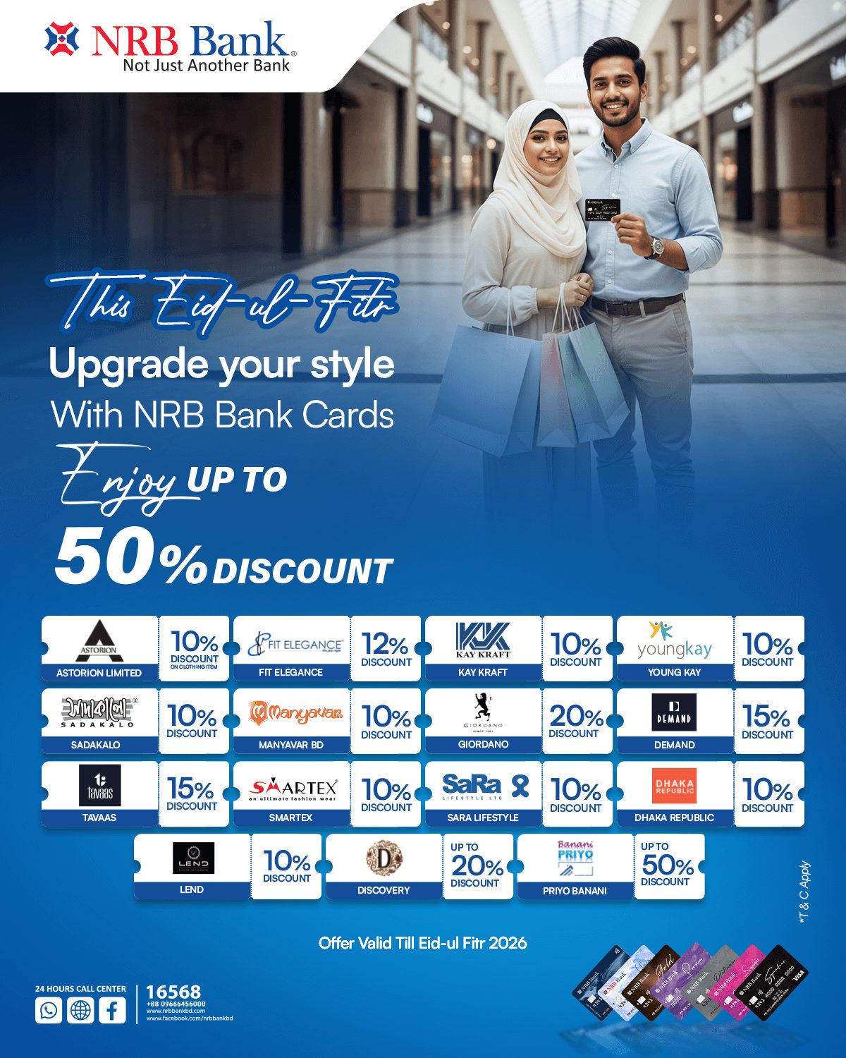 Discover NRB Bank's ever-exciting discounts and offers with numerous partners selected with care to cater to your discerning needs.