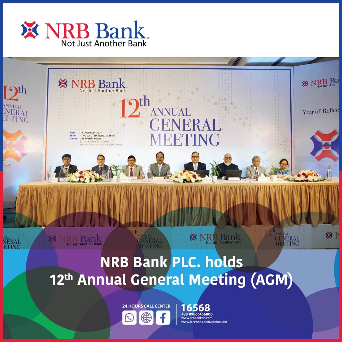NRB Bank PLC successfully conducted its 12th Annual General Meeting (AGM), at which the shareholders approved the audited financial statements for the preceding year, declaration of dividend, appointment of the statutory auditors and corporate governance auditors for the year 2025 and fixation of their remuneration.